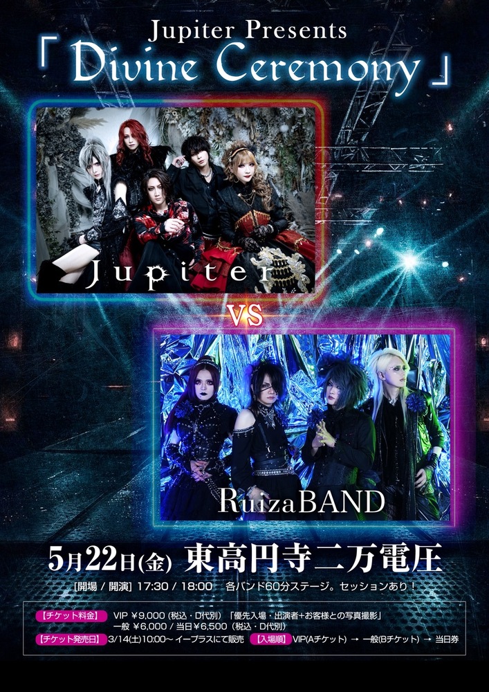 Jupiter Presents「Divine Ceremony」5/22(金)東高円寺二万電圧vs Ruiza BAND[開場 / 開演] 17:30 / 18:00【チケット料金】VI...
